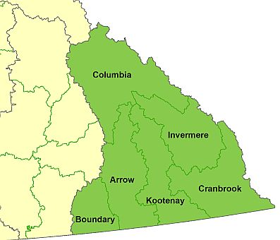 South East Fire Centre Zones – Map Image credit – bcwildfire.ca